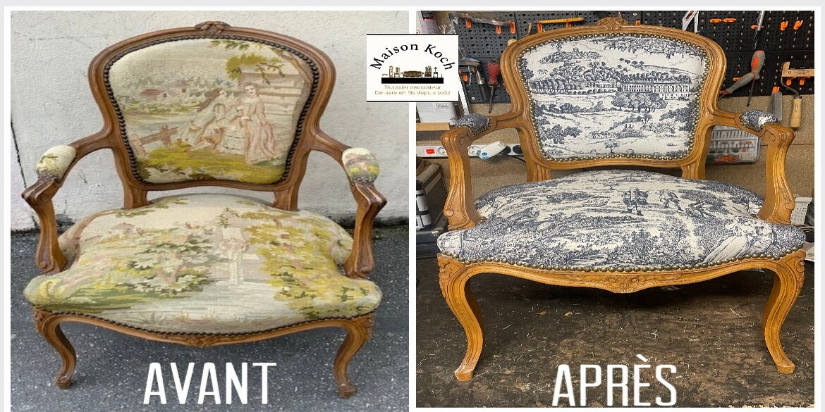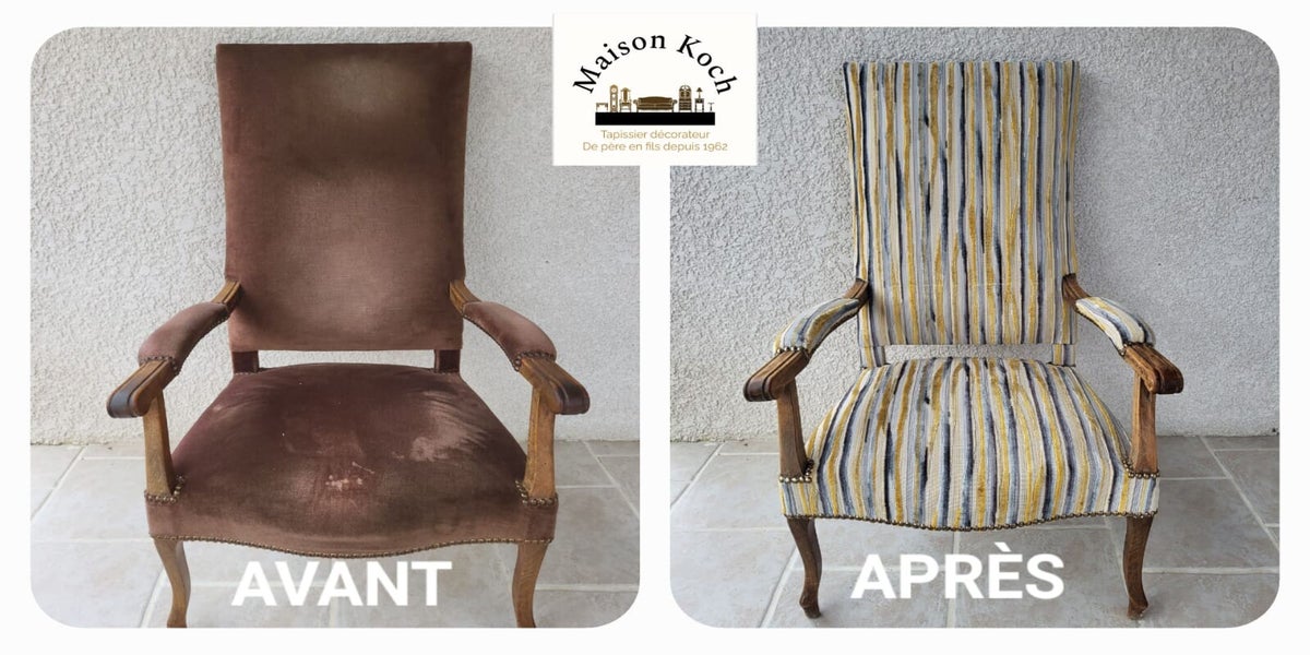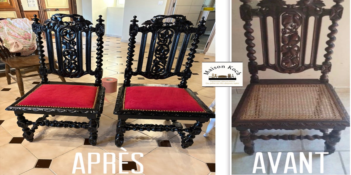 Maison Koch est une entreprise Familiale spécialisée dans la Tapisserie l'Ébénisterie et la Décoration d'intérieur depuis 4 générations et dans le Rempaillage-Cannage depuis 9 générations Notre savoir-faire transmis de père en fils nous permet de proposer des prestations de haute qualité, alliant tradition et modernité. Nous mettons un point d'honneur à satisfaire pleinement nos clients en leur offrant des solutions sur mesure et un accompagnement personnalisé.