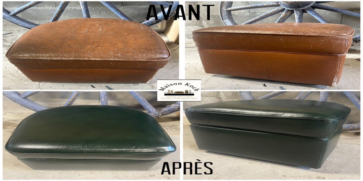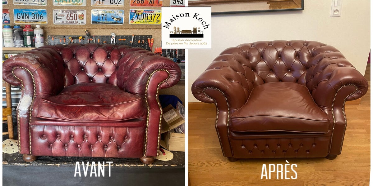 Nous avons développé cette spécialité (tapissier cuir) depuis longtemps. Elle intègre le nettoyage, la recoloration, la repigmentation des canapés et fauteuils en cuir.